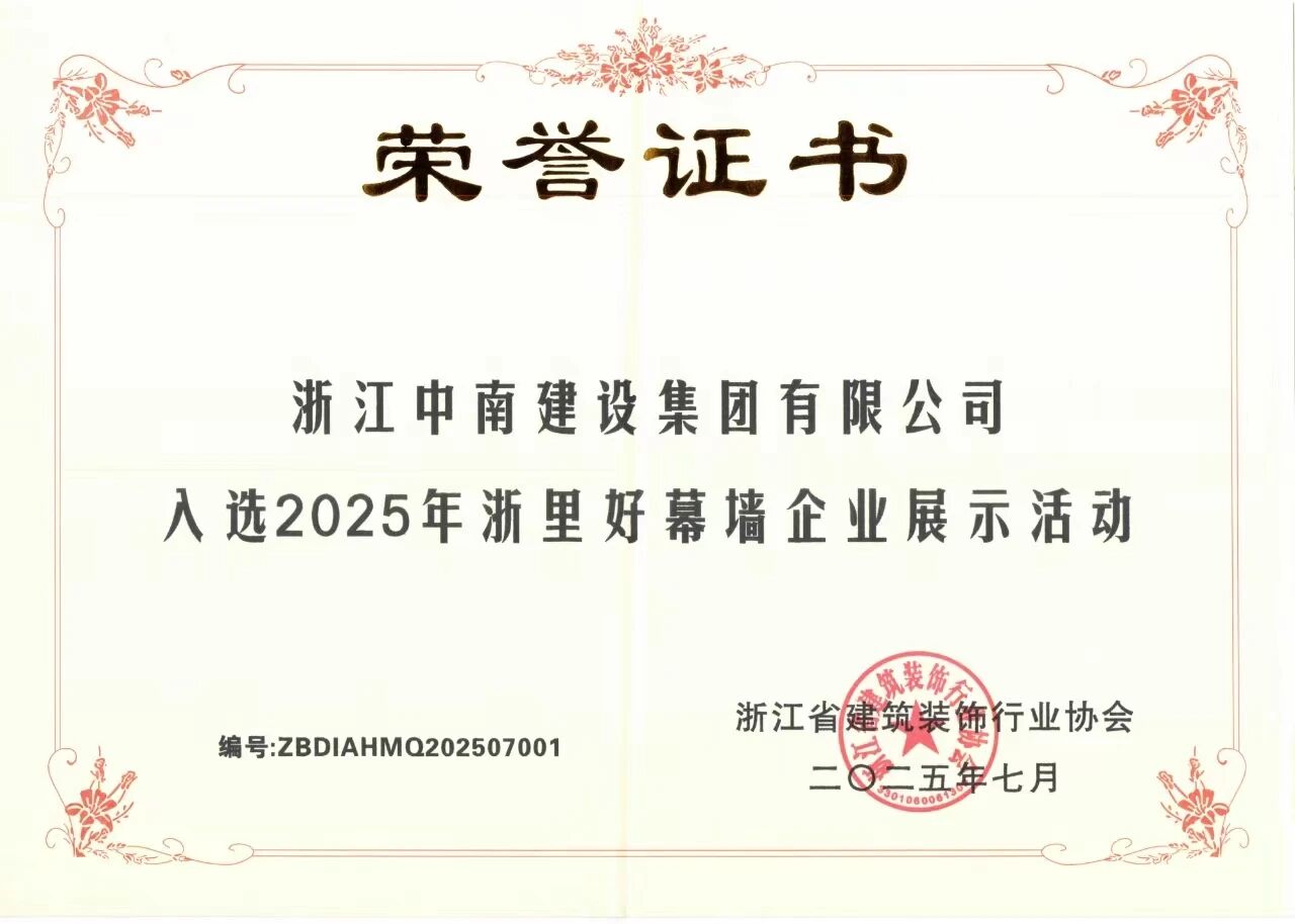 “浙江中南”荣登“浙里好幕墙”系列展示活动名单2025-07-08下载文件:暂时没有下载文件